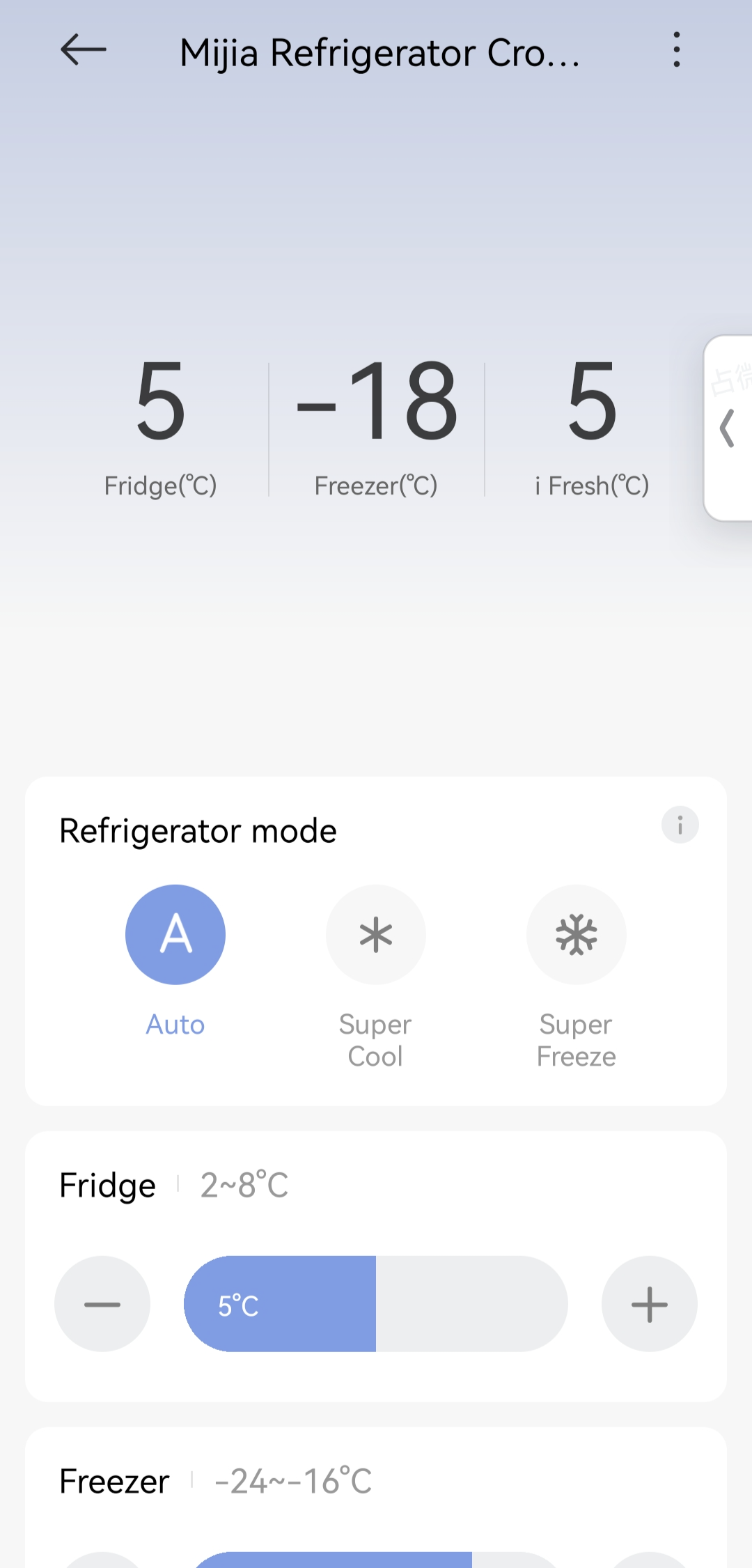 A: Kisaran suhu yang dapat disesuaikan dari Mijia Refrigerator Cross Door 510L's i Fresh adalah -1 °C ~ 5 °C.