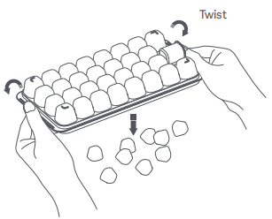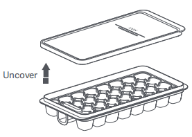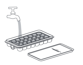 1. Sebelum menggunakan baki es batu untuk pertama kalinya, bilas kompartemen es dan tutup baki secara terpisah dengan air bersih pada suhu tidak lebih tinggi dari 80°C;