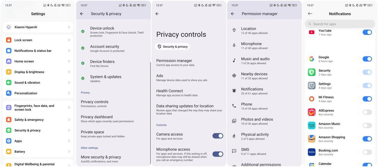 | Buka kunci telepon | N | Y | Hanya didukung di perangkat MIUI dan Xiaomi HyperOS | |