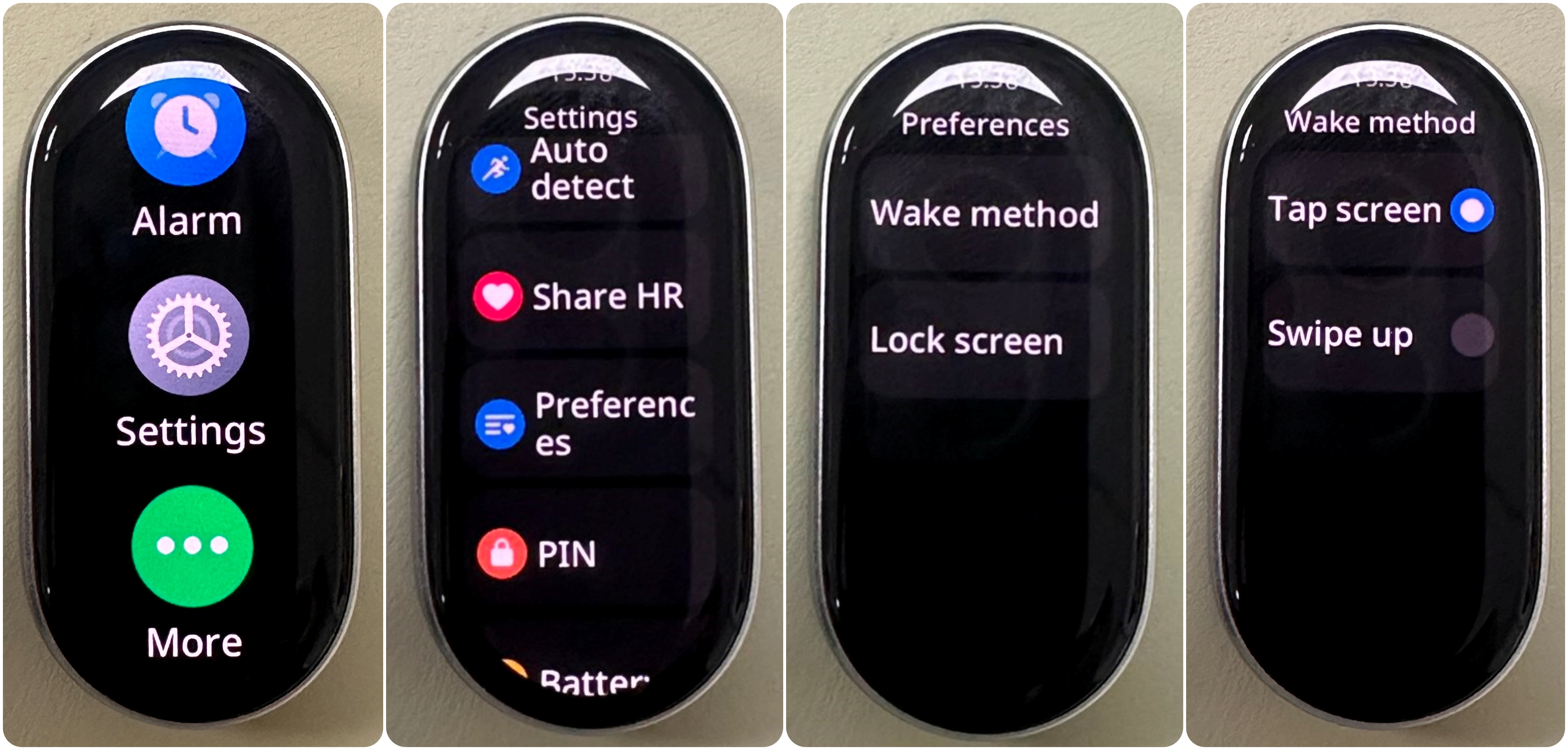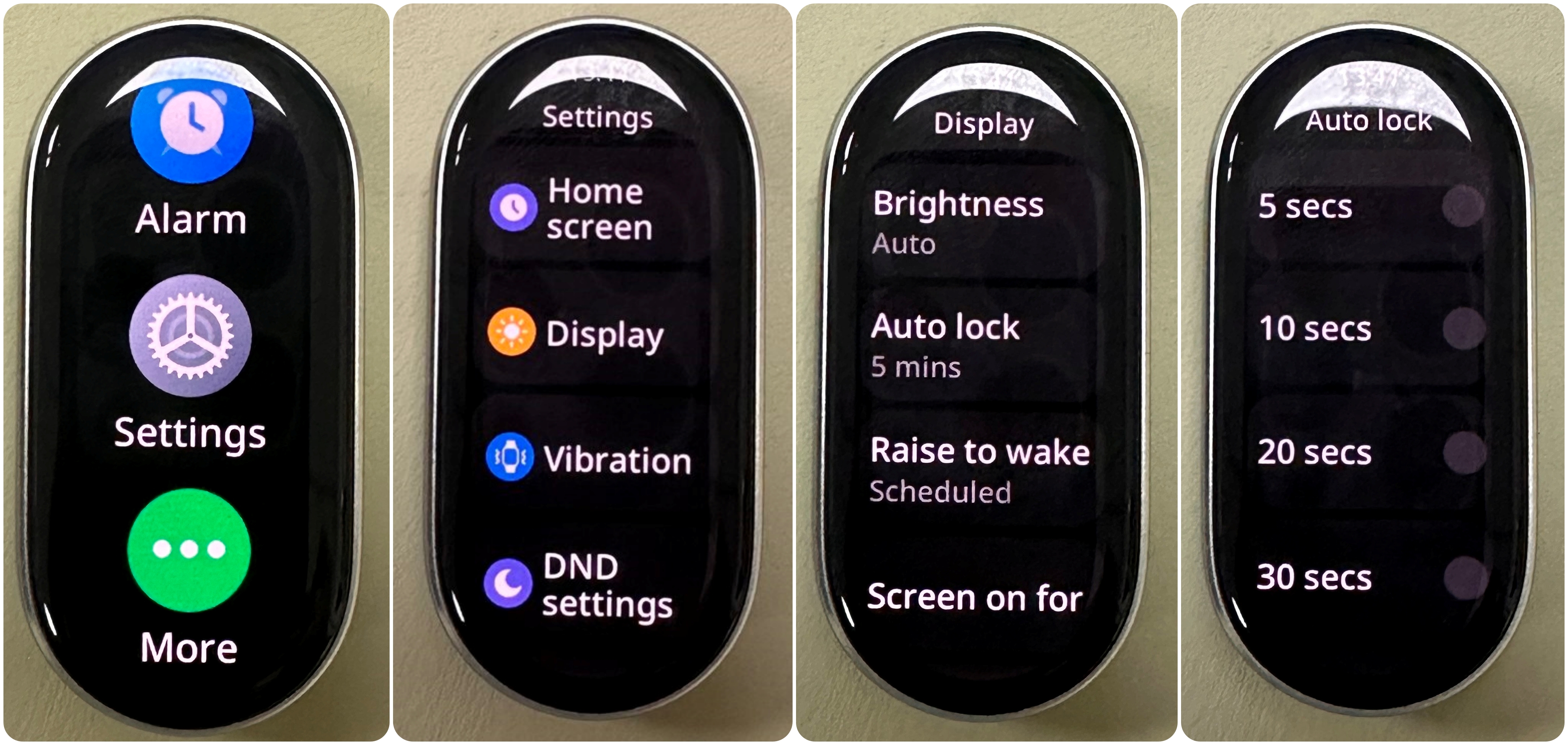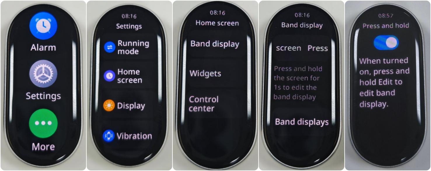Statistik, Latihan, Riwayat, Kursus lari, Status latihan, Detak jantung, Skor vitalitas, SpO₂, Tidur, Stres, Cuaca, Kalender, Alarm, Xiaomi Smart Hub, Pengaturan, dan banyak lagi.