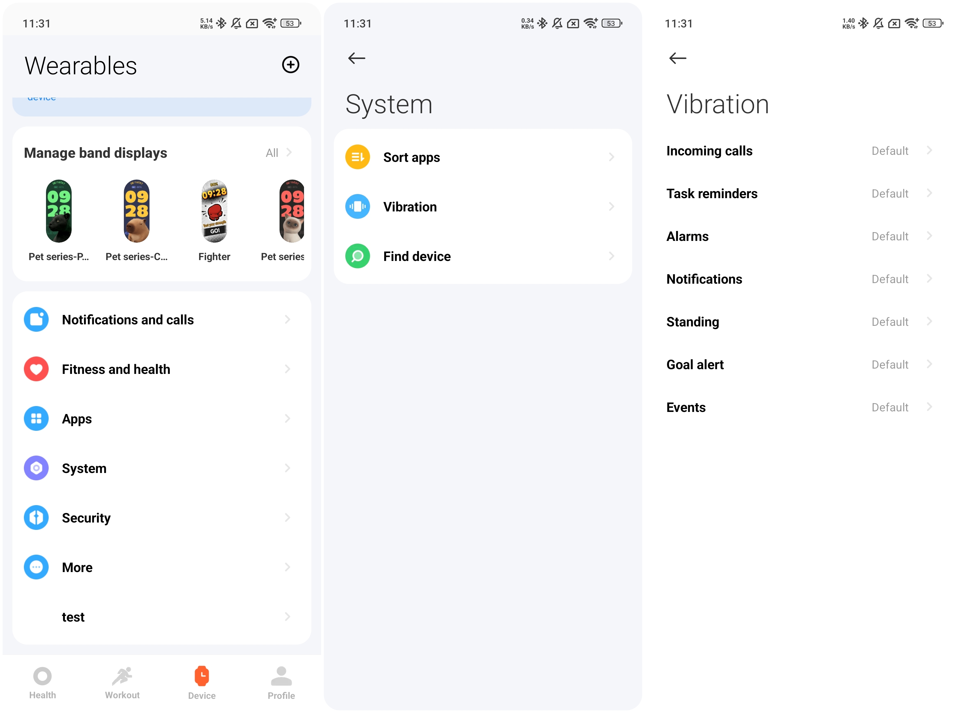 Di bagian Lainnya, Anda akan menemukan fitur tambahan seperti Acara (hanya didukung di ponsel Xiaomi dan perangkat iOS), Tugas, Pernapasan, Siklus, Stopwatch, Musik, Temukan ponsel, Jam dunia, Telepon diam, Kamera ponsel remote control (hanya didukung pada model tertentu), Timer, Senter, Fokus, dan Kompas.