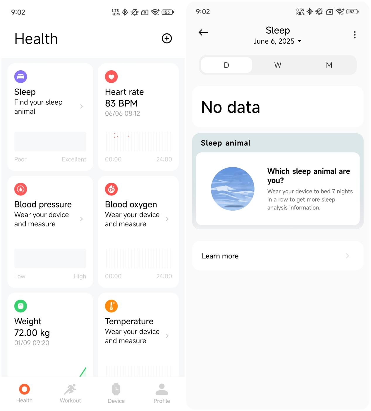 2. Hewan tidur: Setelah Anda memakai pita untuk tidur, itu akan menganalisis data tidur panjang 7 hari terbaru Anda (dalam jendela 30 hari) untuk menghasilkan hewan Tidur yang mewakili kebiasaan tidur Anda. APP kemudian memberikan saran rutinitas harian yang dipersonalisasi berdasarkan hewan Tidur terbaru. Anda dapat memeriksanya di Mi Fitness APP >> [Kesehatan] >> [Tidur] >> [D] >> [Hewan tidur];