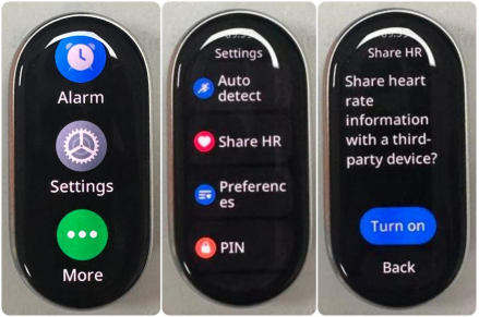 5. Siaran SDM Bluetooth: Setelah mengaktifkan fitur ini, pita dapat mengirimkan data detak jantung waktu nyata melalui Bluetooth ke perangkat lain yang mendukung penerimaan siaran detak jantung. Untuk mengaktifkannya, buka daftar APLIKASI band >> [Pengaturan] >> [Bagikan SDM] >> [Nyalakan];