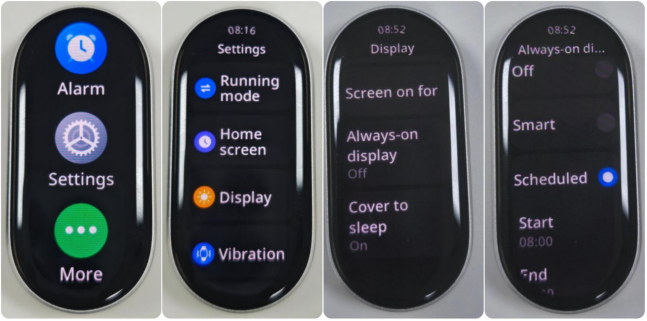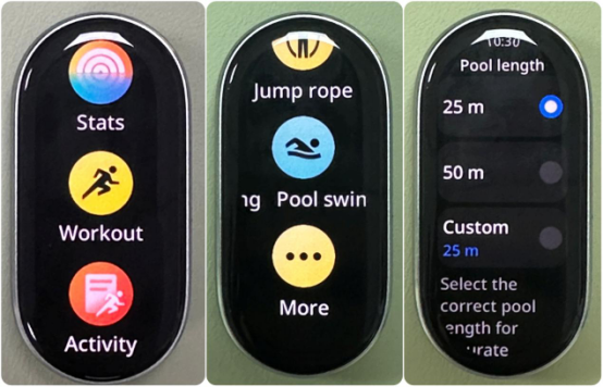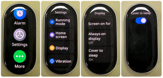 1. Layar bergaya landasan pacu AMOLED 1.72 inci dengan bezel 2.0mm ultra-sempit di semua sisi, menghadirkan rasio layar-ke-bodi yang tinggi (73%), kecerahan puncak 1500nits, dan kecepatan refresh 60Hz yang halus. Layar juga menampilkan sensitivitas sentuhan yang ditingkatkan saat tangan Anda basah;
