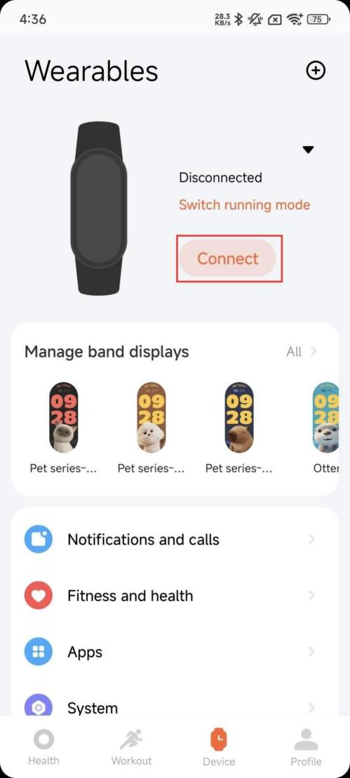 2. Konfirmasikan apakah pemutar musik ponsel Anda dihidupkan, dan apakah APLIKASI Mi Fitness terhubung ke band Anda;