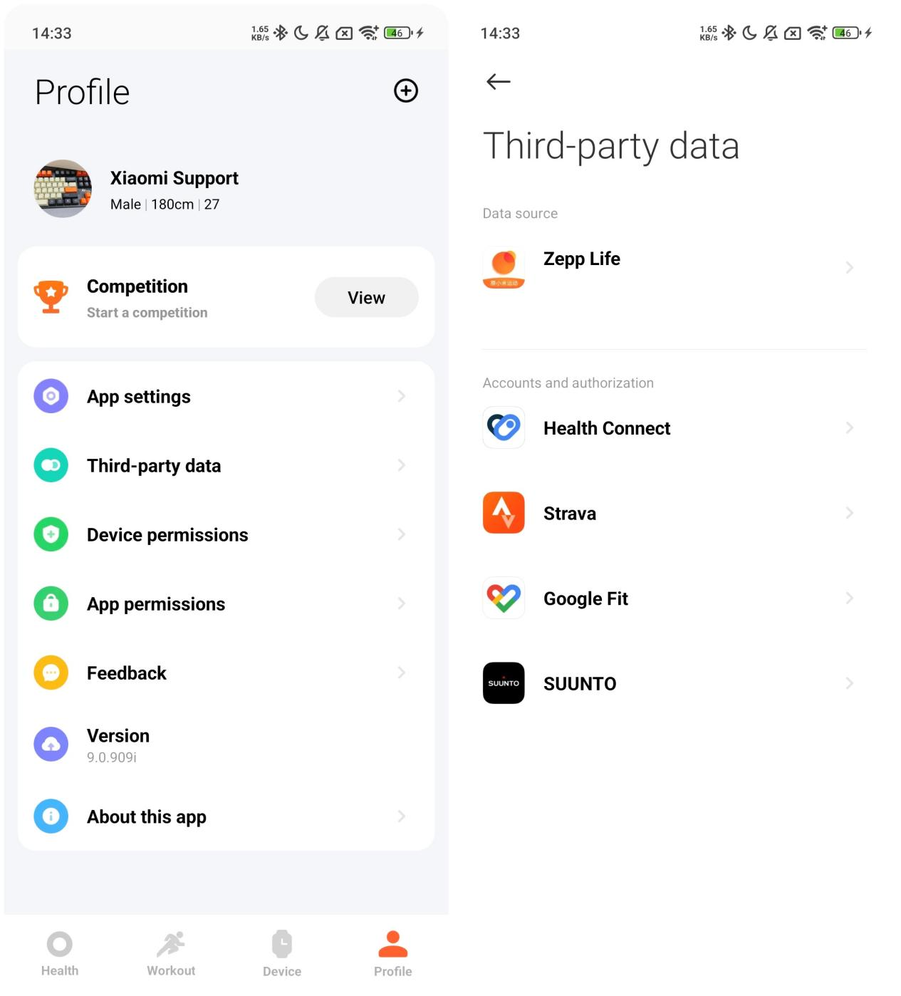2. Buka Aplikasi Mi Fitness >> [Profil] >> [Data pihak ketiga] >> pilih sumber data yang ingin Anda sinkronkan.