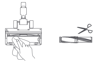 3. Potong rambut yang kusut di sekitar sikat rol, lalu bersihkan;