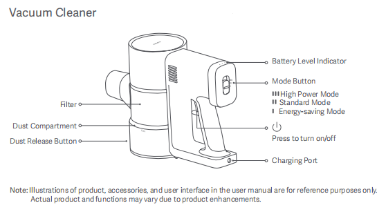 A: Xiaomi Vacuum Cleaner G20memiliki 3 mode: Mode Daya Tinggi (430W), Mode Standar (150W) dan Mode Hemat Energi (daya konstan pada 60W).