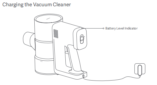1. Saat mengisi daya Xiaomi Vacuum Cleaner G20 untuk pertama kalinya atau setelah lama tidak digunakan, akan memakan waktu lebih lama dari biasanya untuk mencapai pengisian penuh. Ini karena baterai perlu dikondisikan;