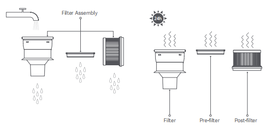 1. Elemen Pra-filter dan elemen pasca-filter hanya dapat dibilas dan menghindari rendaman;