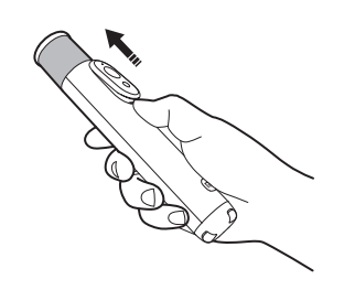 Seperti yang ditunjukkan pada gambar, dorong remote control ke luar sambil menggesernya ke atas.