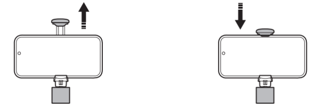 3. Kencangkan telepon: Seperti yang ditunjukkan pada gambar, buka penahan yang terletak di bawah klip ponsel, dan masukkan telepon ke dalam klip, pastikan tidak menghalangi tombol telepon apa pun. Kencangkan telepon dengan menarik penahan atas dan bawah klip dan pastikan bagian belakang ponsel diposisikan dengan kuat pada klip.