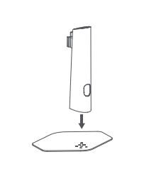 Tempatkan engsel logam di bagian depan dudukan ke dalam slot di bagian belakang monitor. Dorong dudukan ke arah panah hingga berbunyi klik pada tempatnya.