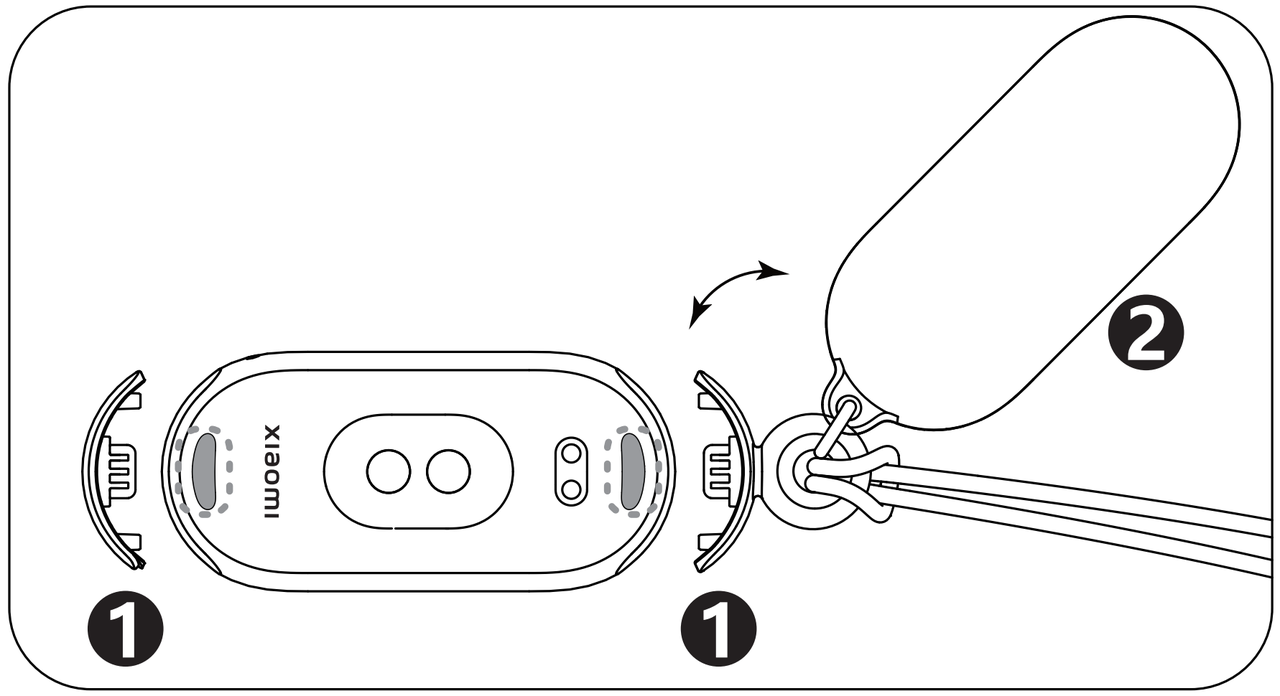 Saat memakai tali, harap berhati-hatilah untuk tidak memotong ujung tali pendek (ujung gesper) dengan benda keras, untuk menghindari gesper terlepas karena kontak yang tidak disengaja. Tali dirancang dengan struktur melengkung seperti pergelangan tangan, dan gesper tidak akan lepas secara otomatis tanpa kekuatan eksternal. Jika gesper dilonggarkan secara tidak sengaja, harap kencangkan gesper tepat waktu. Jika lubang gesper yang sesuai berubah bentuk dan gesper terlepas karena keausan jangka panjang, harap segera ganti talinya.