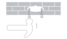 Tempatkan sisi alas dengan panah menghadap ke depan, lalu sejajarkan lubang. Masukkan sekrup lalu kencangkan ke dalam colokan dinding dengan obeng Phillips.