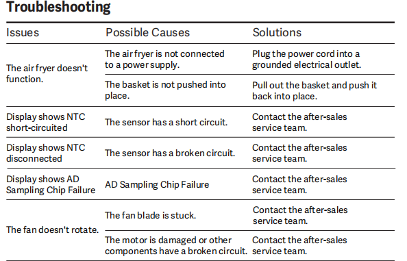 Jika penggorengan udara tidak berfungsi, silakan lihat langkah-langkah pemecahan masalah berikut:
