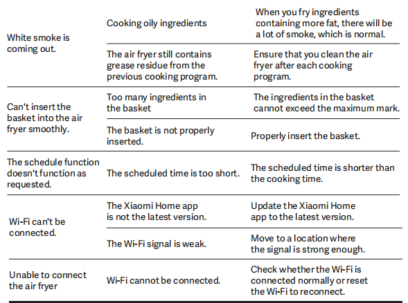 A: Jika Xiaomi Smart Double Stack Air Fryer 12L mengeluarkan asap putih, silakan lihat informasi berikut: