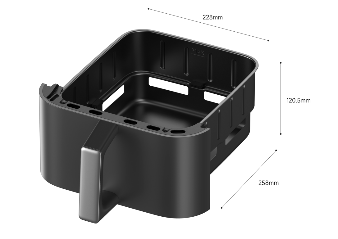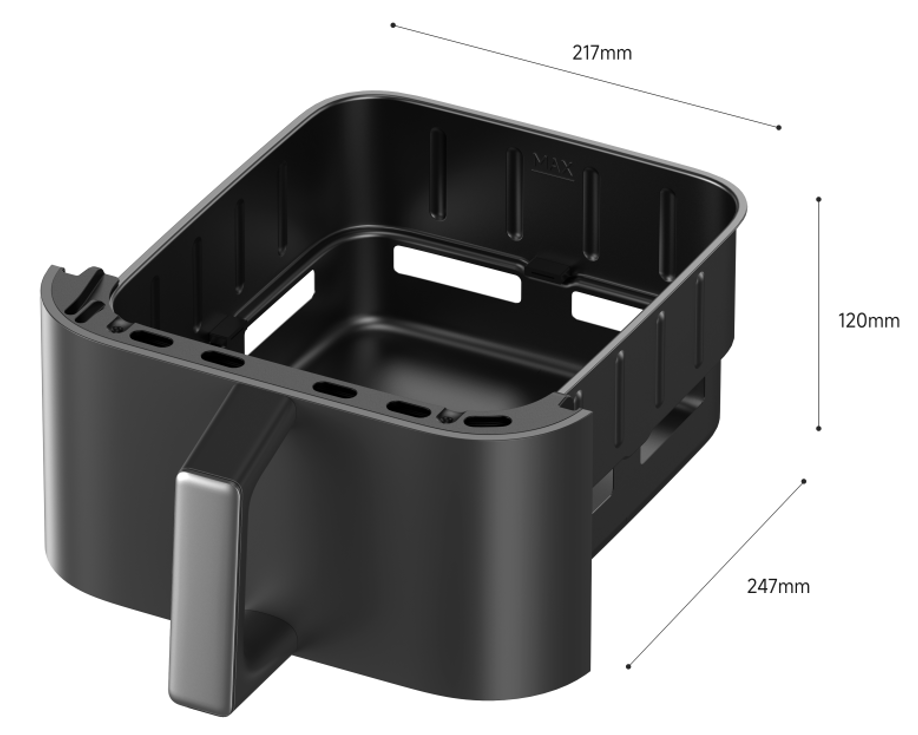 Penggorengan udara biasa hanya memiliki satu keranjang penggorengan.