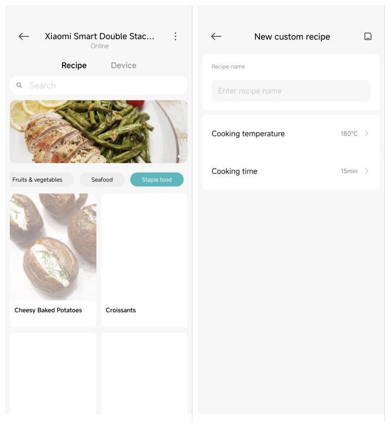 Xiaomi Smart Double Stack Air Fryer 12L memungkinkan Anda membuat resep khusus melalui Aplikasi.