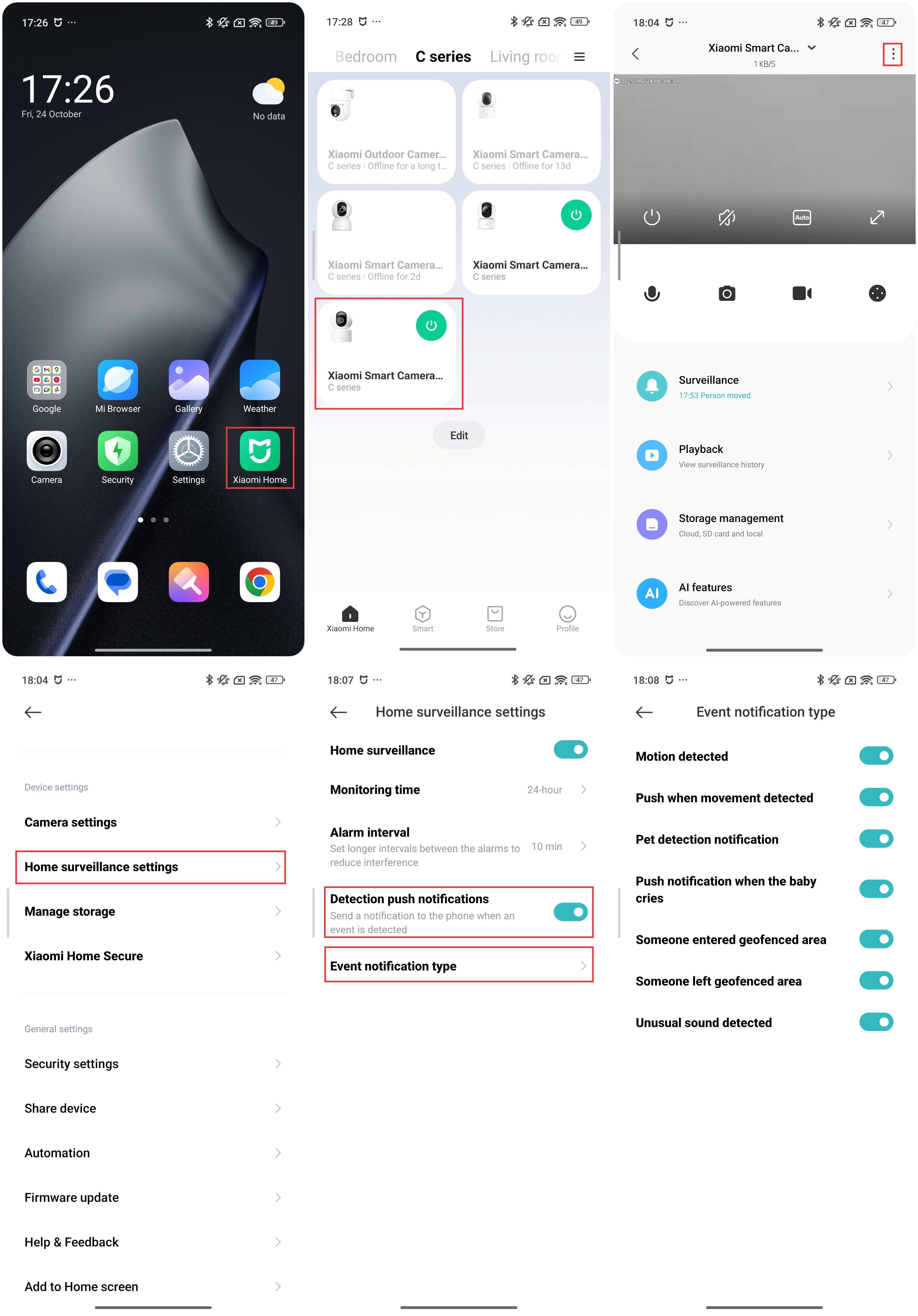 Jika Xiaomi Smart Camera C302 merekam video alarm tetapi Anda tidak menerima pemberitahuan, periksa terlebih dahulu apakah sakelar pengawasan rumah di pengaturan dihidupkan dan pastikan sakelar pemberitahuan push deteksi juga diaktifkan.