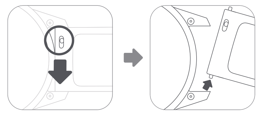 1. Melepas tali: Dorong batang pegas di tali ke bawah ke arah tali untuk melepaskannya, lalu lepaskan talinya.