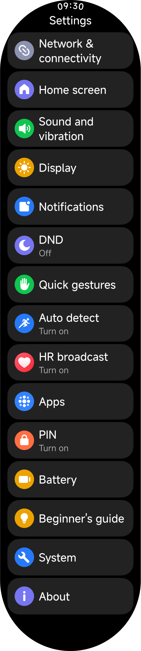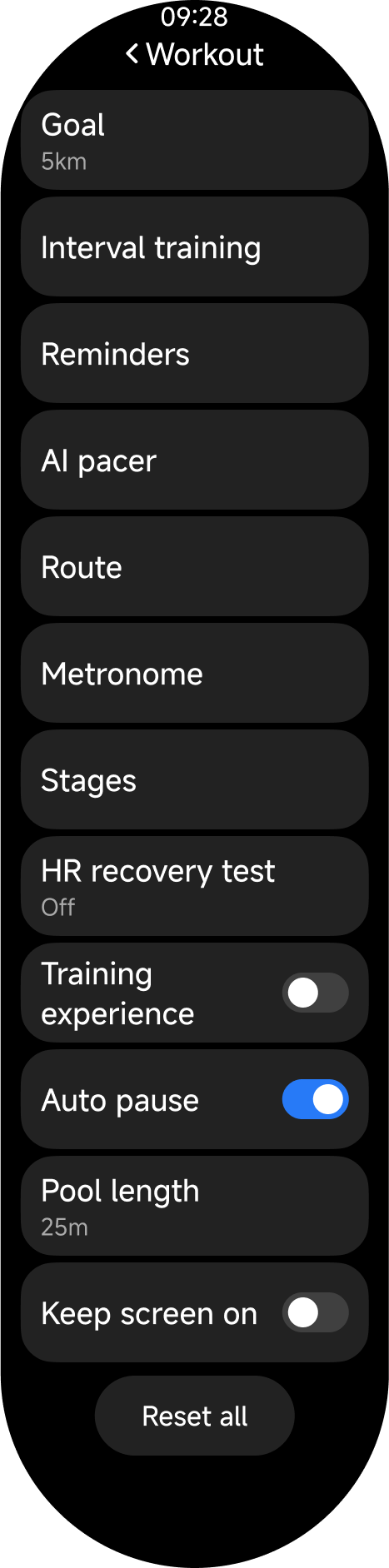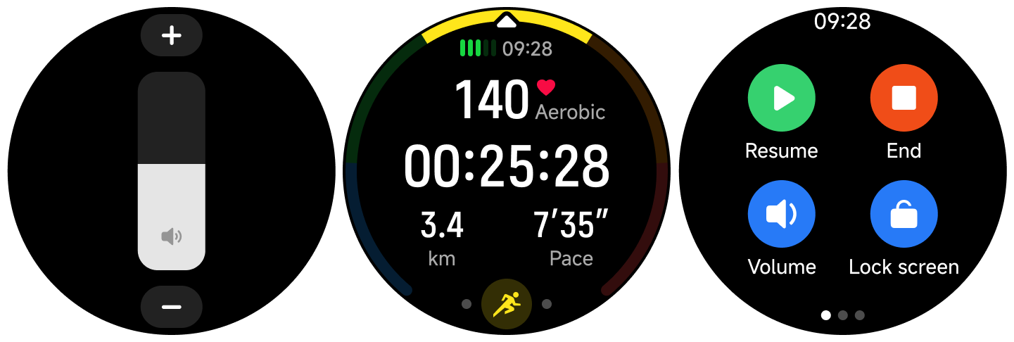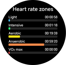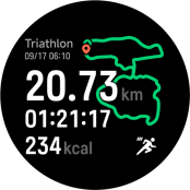 Latihan, Riwayat, Berlari, Statistik, Status latihan, Detak jantung, Skor vitalitas, SpO2, Tidur, Peristiwa, Stres, Latihan pernapasan, Silus, Cuaca, Kartu, Kalender, Tugas, Kontak, Telepon, Perekam, Musik, Pengaturan, Kamera, Alarm, Stopwatch, Timer, Jam dunia, Barometer, Kompas, Senter, Temukan ponsel, dan banyak lagi.