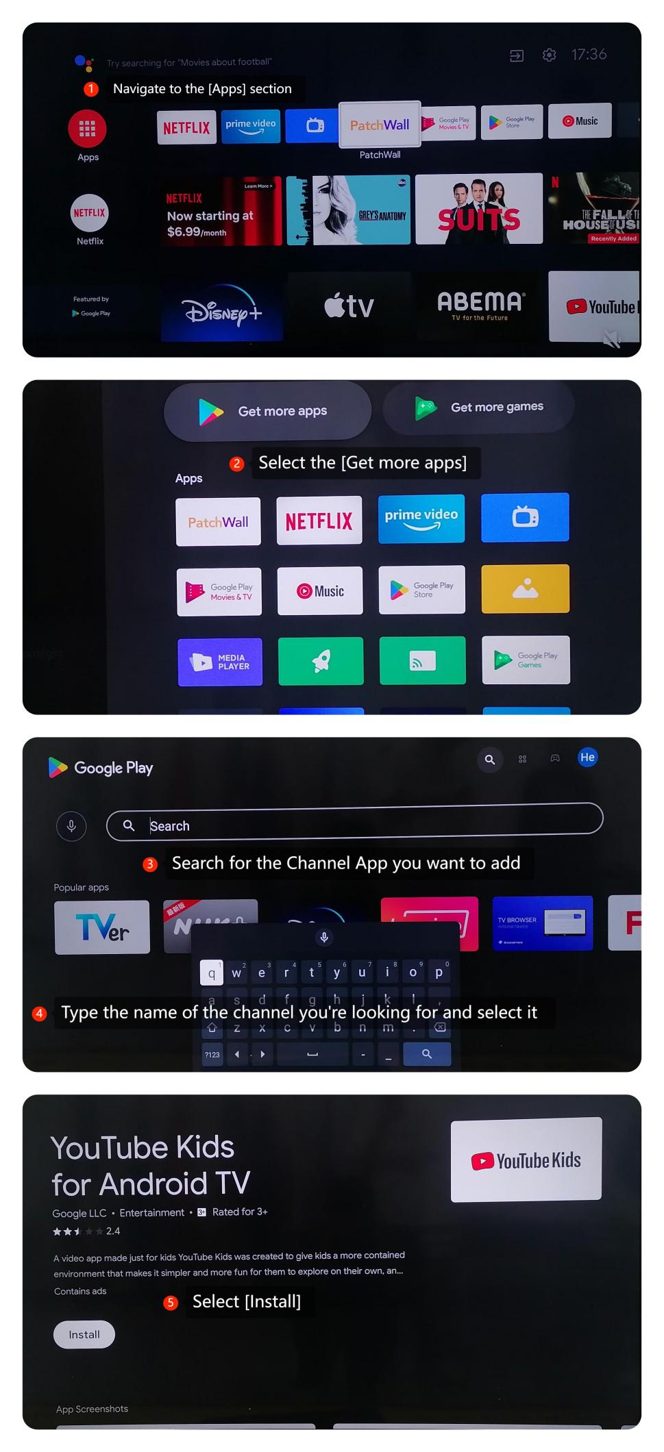 Mi TV 4 43 memungkinkan Anda untuk menambah dan menghapus saluran yang sesuai dengan preferensi Anda. Saat Anda membuka aplikasi streaming seperti Netflix, Amazon Prime Video, Hulu, atau YouTube di TV, masing-masing aplikasi ini dianggap sebagai saluran. Untuk menambahkan atau menghapus saluran, Anda dapat mengikuti langkah-langkah umum berikut: Menambahkan Saluran: 1. Tekan Tombol [Home] pada remote TV Anda >> Arahkan ke bagian [Aplikasi]. 2. Cari Aplikasi Saluran yangingin Anda tambahkan. 3. Gunakan keyboard di layar untuk mengetik nama saluran yang Anda cari dan pilih >>pilih [Instal]. 4. Setelah instalasi, buka aplikasi dan masuk atau atur akun Anda jika diperlukan.