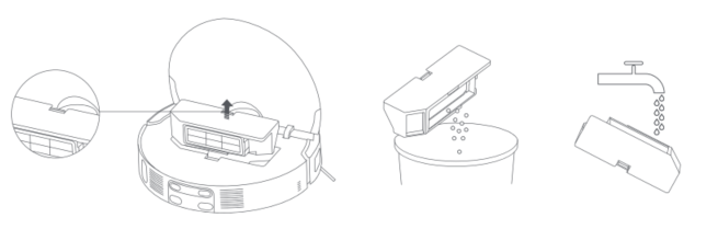 Jika rakitan pel dilepas, penyedot debu robot akan secara otomatis melakukan tugas penyapuan saja setelah memulai.