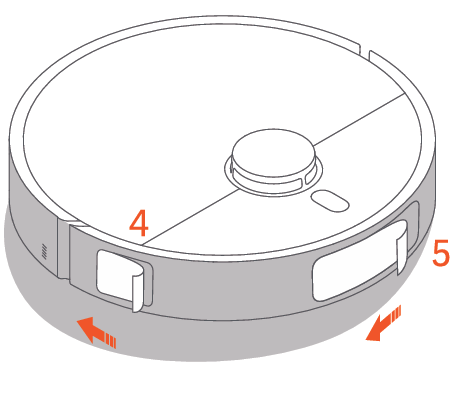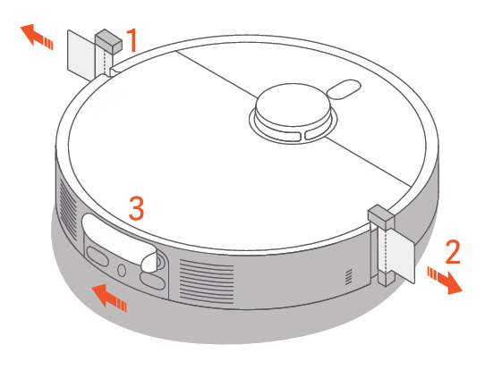 A: Sebelum digunakan, pastikan untuk melepas strip pelindung di kedua sisi penyedot debu robot dan film pelindung pada bodi untuk menghindari pengaruhi penggunaan normal.  |  |