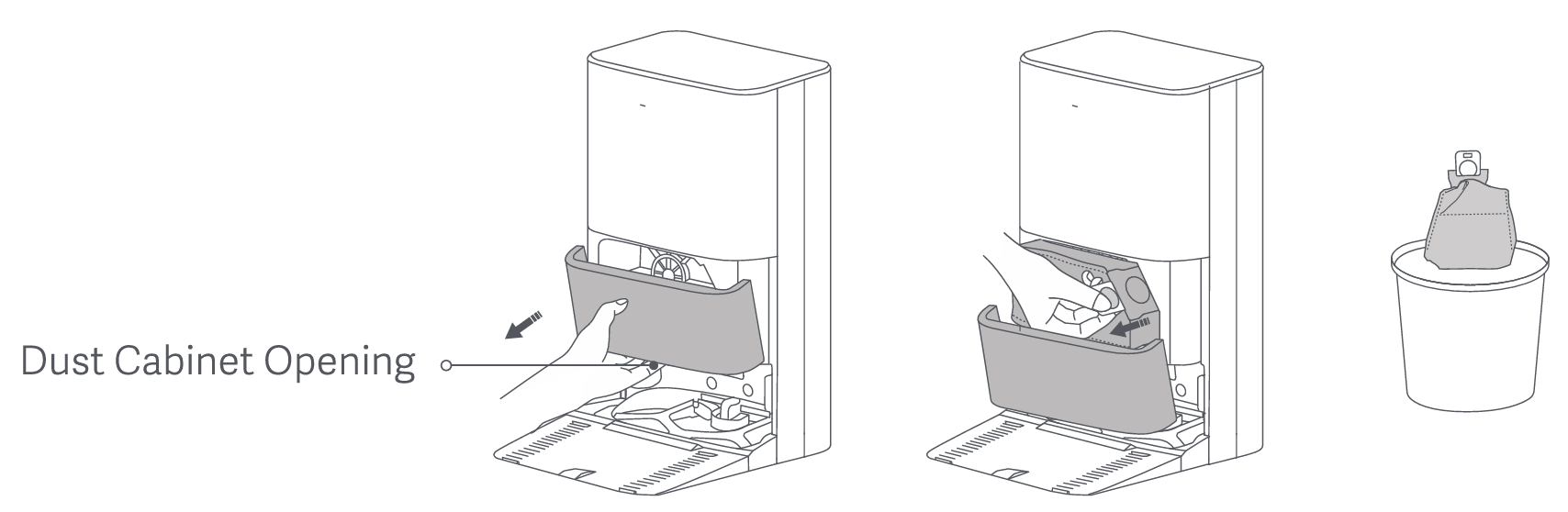 SEBUAH: 1. Stasiun omni sudah dipasang sebelumnya dengan tas sekali pakai saat meninggalkan pabrik. Saat tas sekali pakai perlu diganti, lepaskan penutup lemari debu dengan pegangannya, lepaskan tas sekali pakai, dan ganti dengan yang baru.