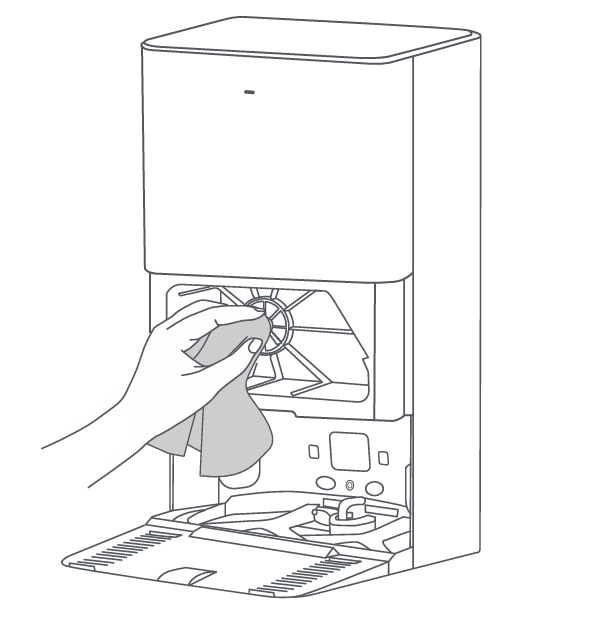 2. Periksa bagian bawah papan cuci apakah ada penyumbatan dan bersihkan bagian dalam stasiun omni dengan kain kering.