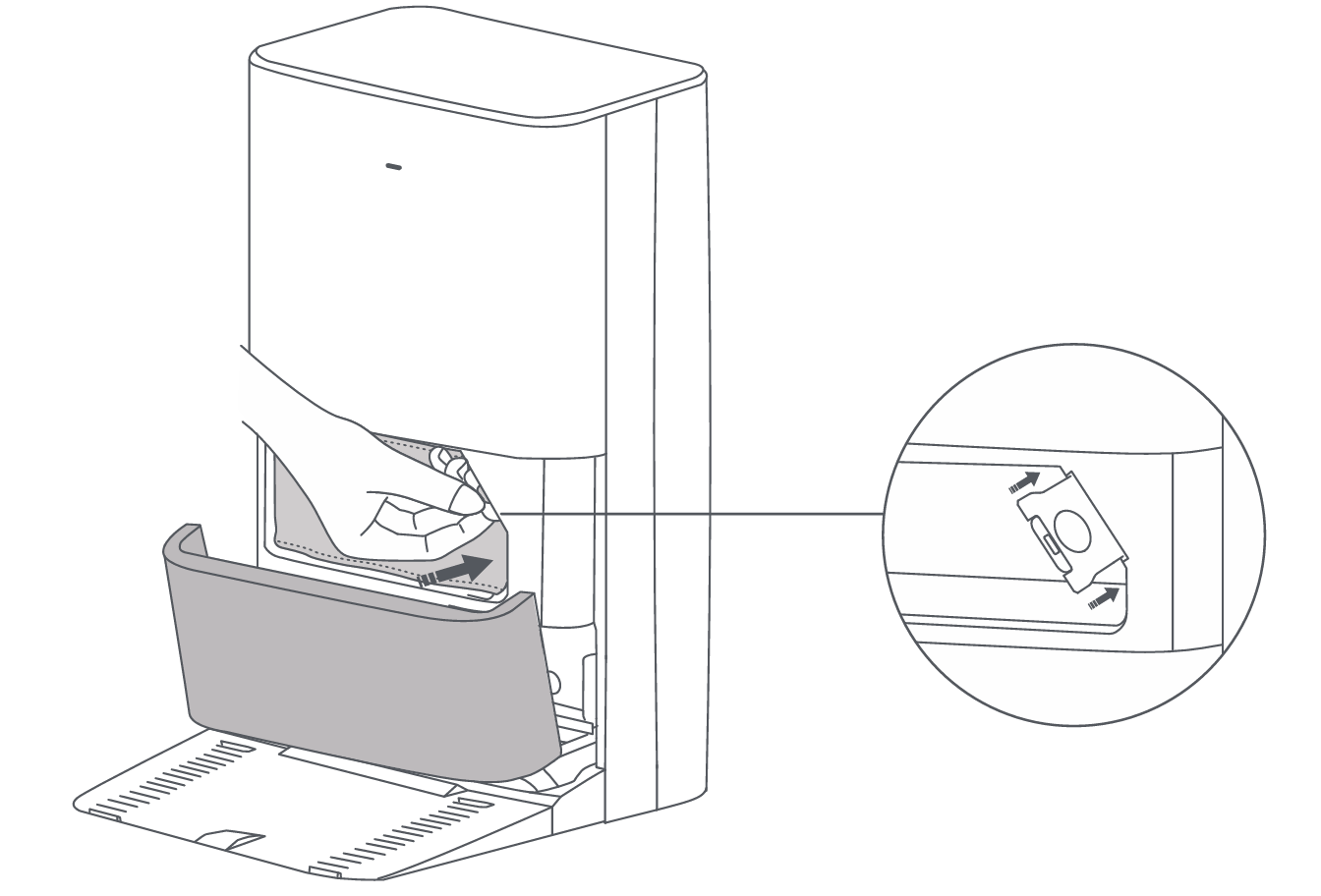 3. Pasang tas sekali pakai baru seperti yang diilustrasikan dan masukkan pegangan tas ke dalam slot.