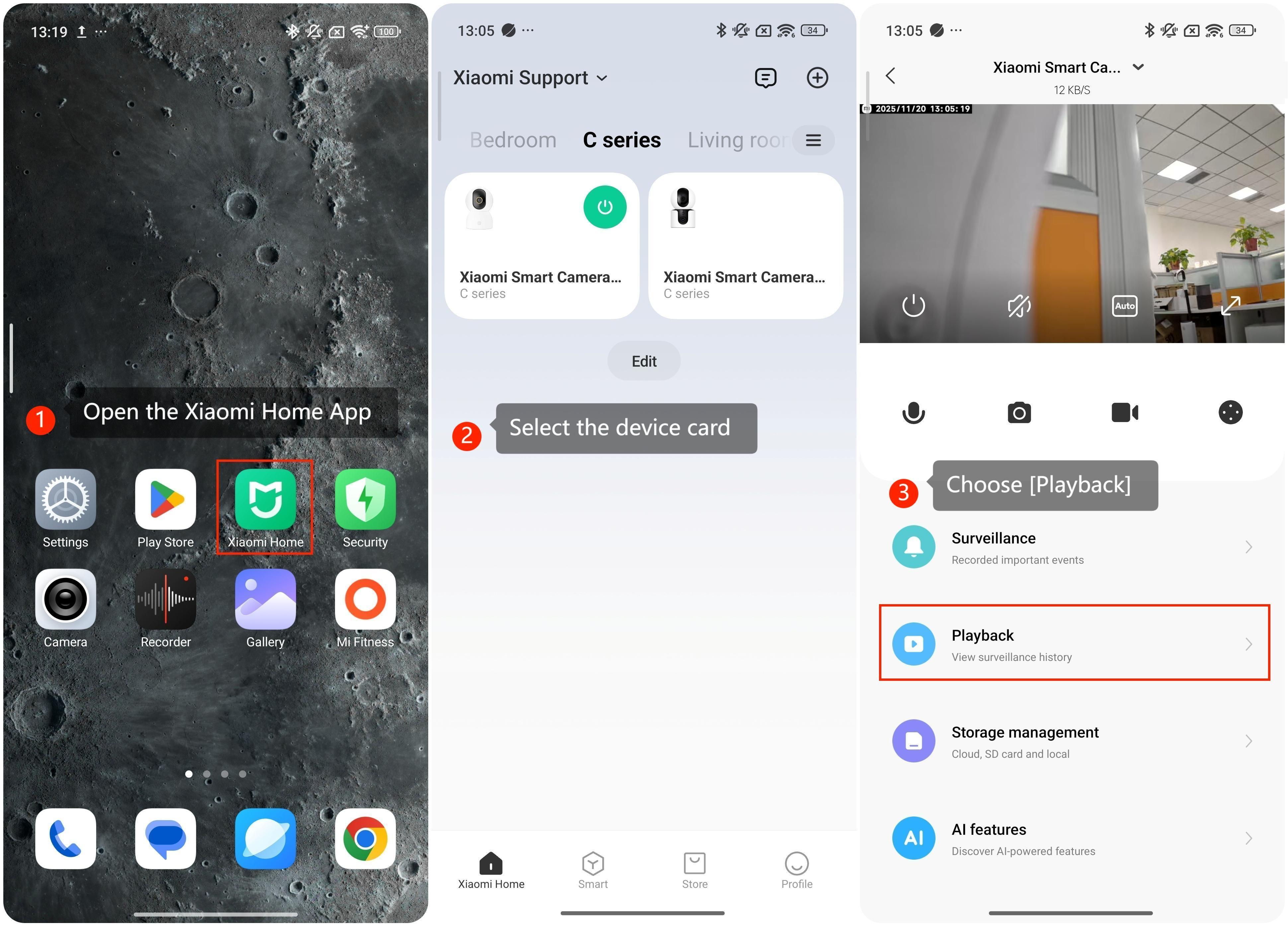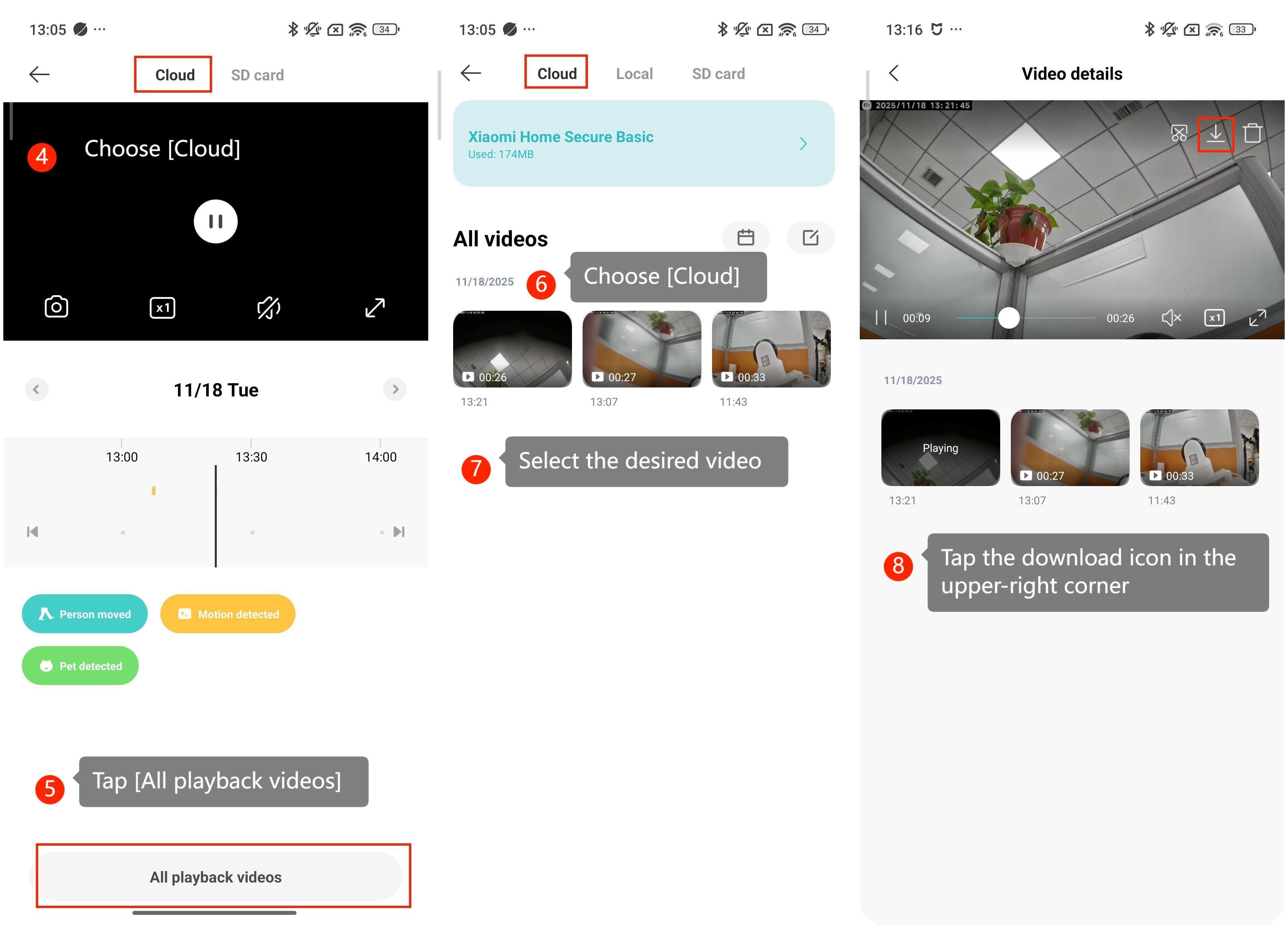 Video yang direkam oleh Xiaomi Home Secure dapat diunduh langsung melalui Aplikasi Xiaomi Home. Hal ini memungkinkan rekaman penting disimpan secara lokal untuk referensi, berbagi, atau pencadangan di masa mendatang, memastikan bahwa rekaman tetap dapat diakses bahkan tanpa koneksi internet aktif.