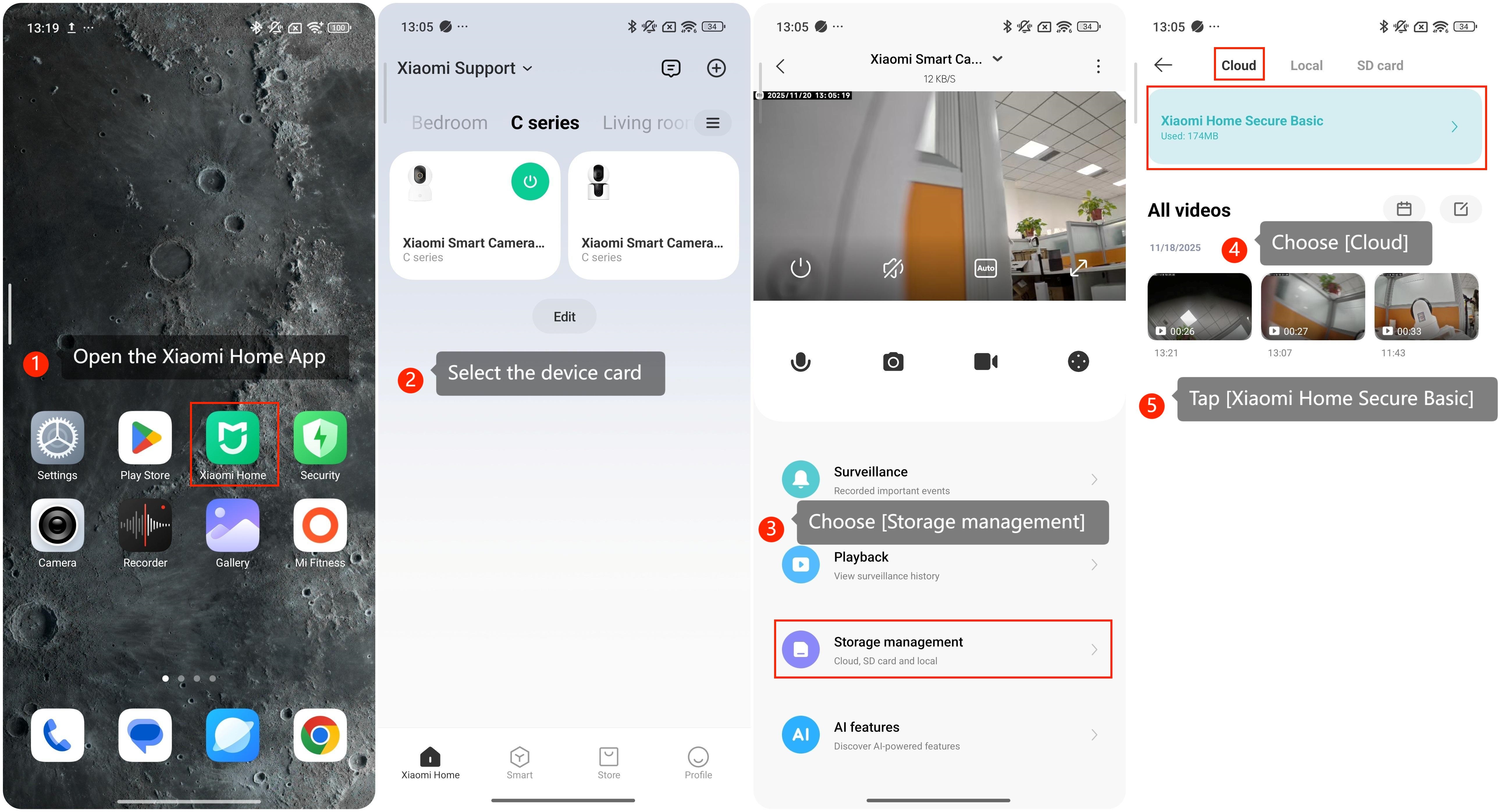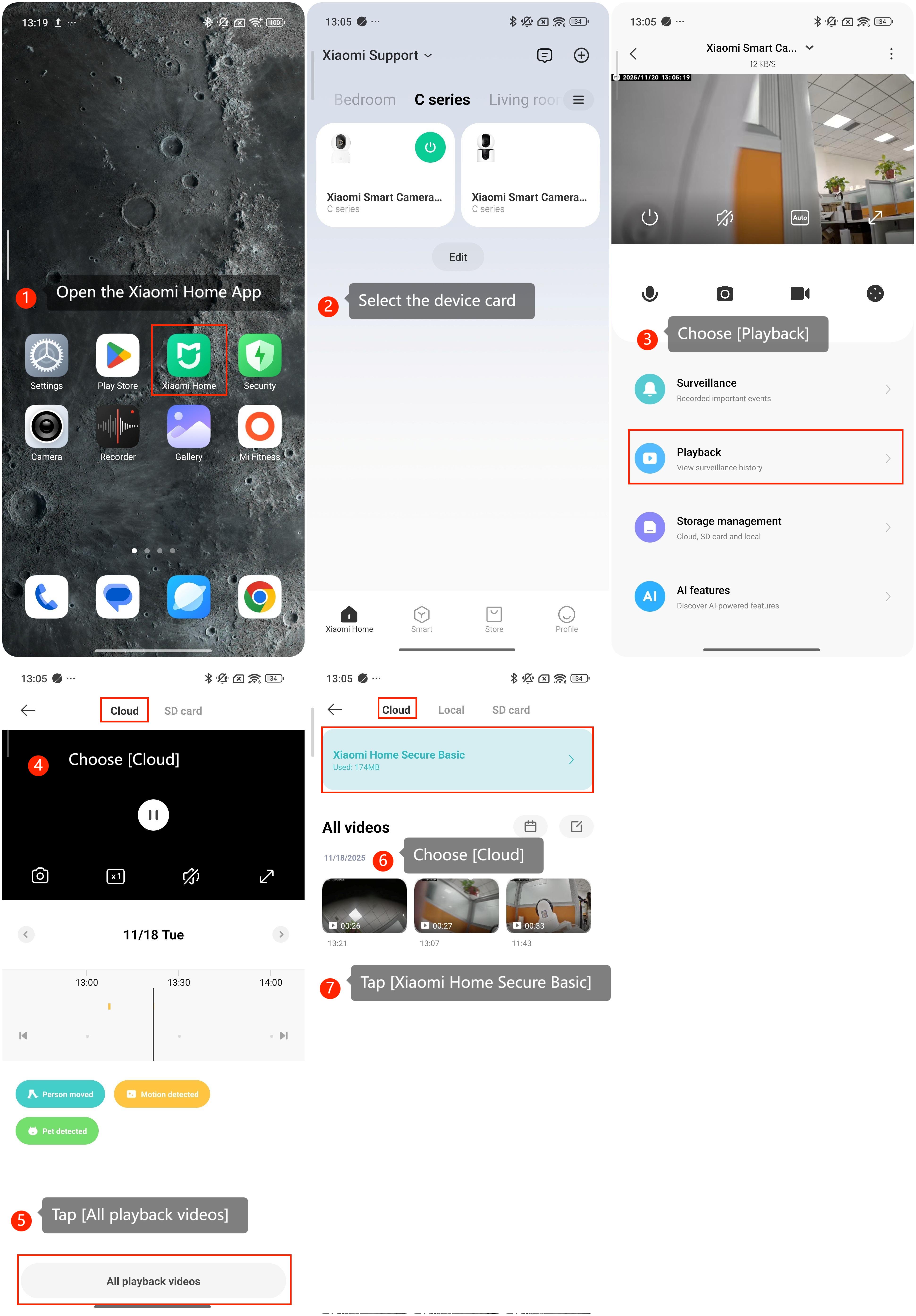 Xiaomi Home Secure adalah platform dalam Aplikasi Xiaomi Home yang memungkinkan Anda melihat penyimpanan cloud, memutar video yang direkam, dan mengelola kamera keamanan Anda.