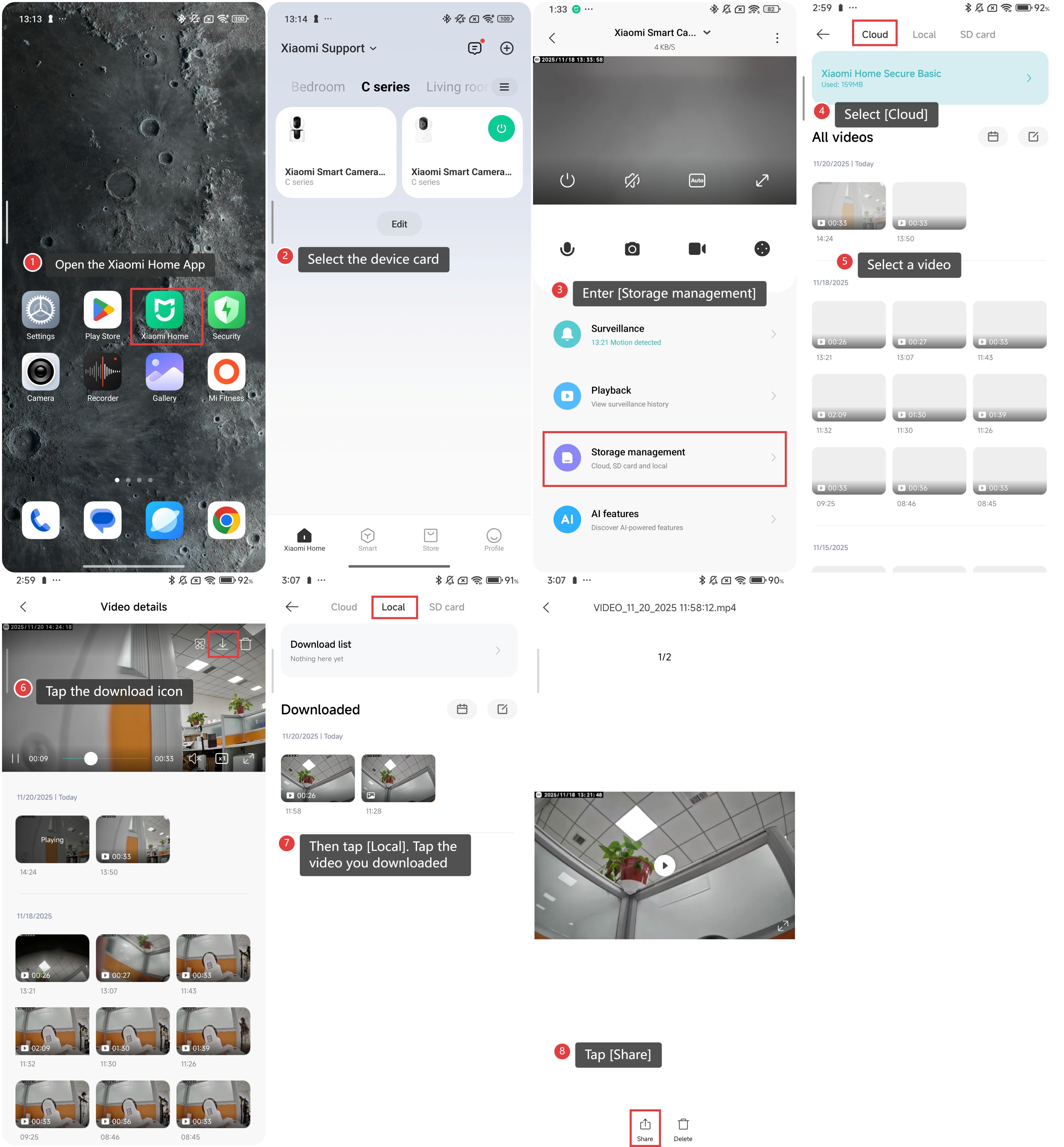 Untuk membagikan video yang direkam oleh Xiaomi Home Secure, silakan lihat langkah-langkah berikut: