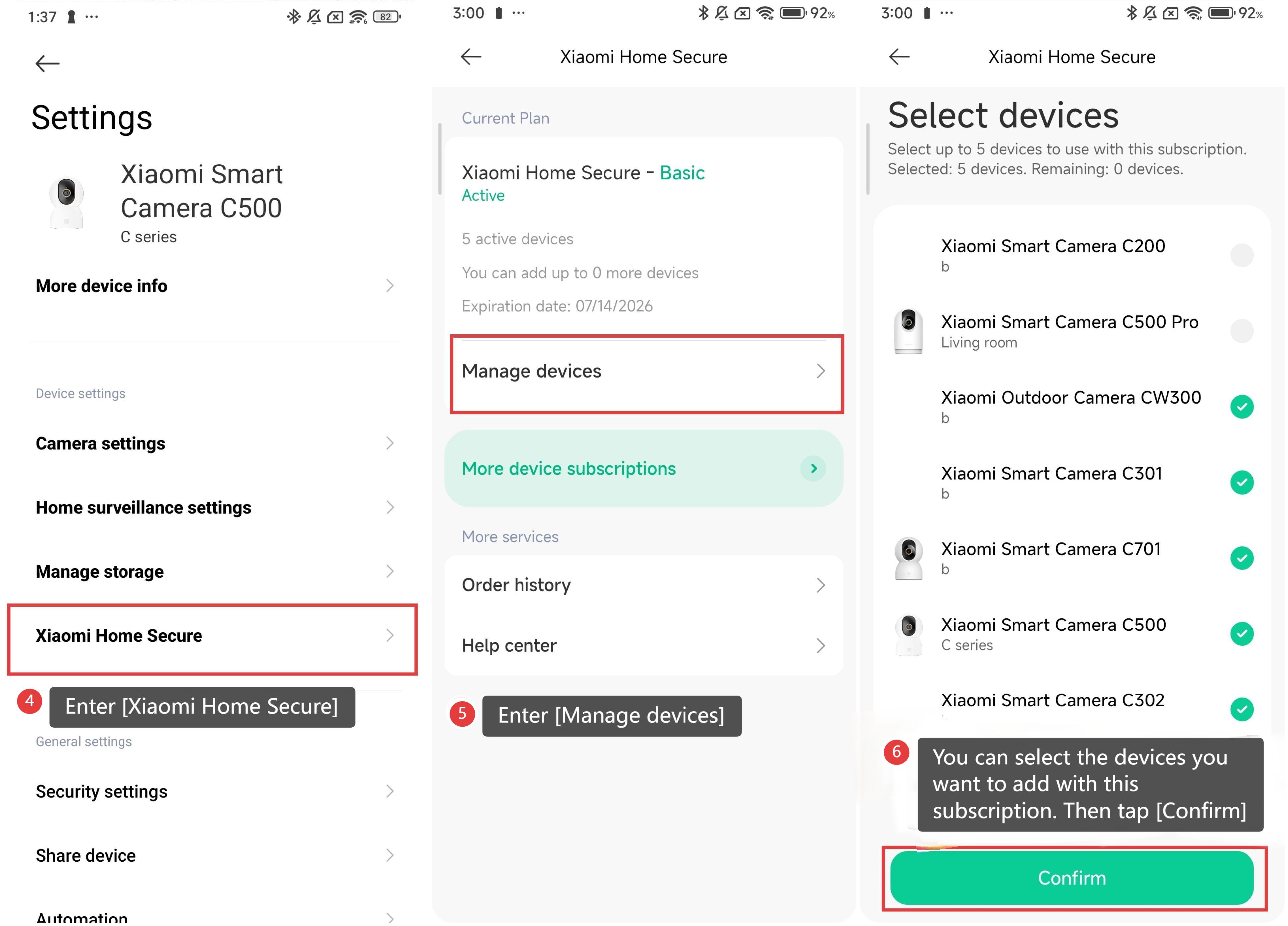 6. Anda dapat memilih perangkat yang ingin Anda tambahkan dengan langganan ini. Kemudian ketuk [Konfirmasi].