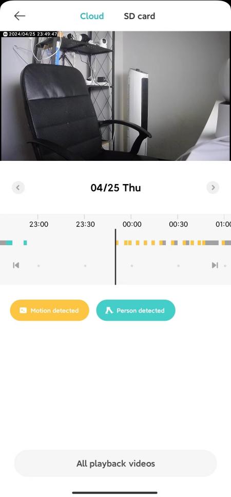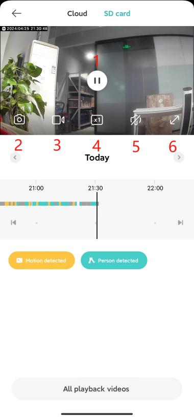 Selain itu, setiap kali Anda memasuki layar pemantauan kamera atau masuk ke penyimpanan cloud, antarmuka pemutaran untuk rekaman pada kartu memori akan dibisukan secara default. Jika Anda perlu memutar suara normal, silakan ketuk tombol bisu untuk mengembalikan suara.