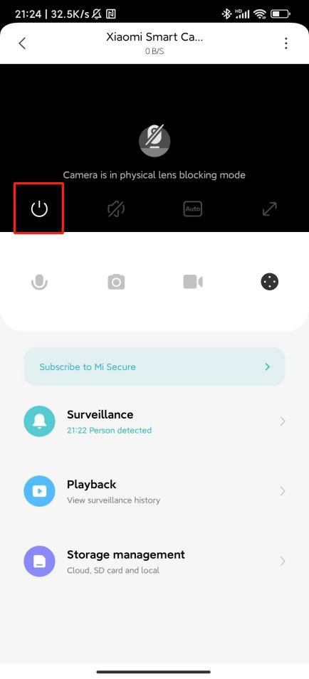 Masuk ke layar pemantauan kamera, ketuk tombol pemblokiran lensa fisik, dan perangkat akan segera masuk ke mode pemblokiran lensa fisik.