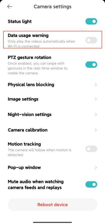 Buka Aplikasi Rumah Xiaomi >> pilih [Kartu Perangkat] >> ketuk ikon tiga titikdi sudut kanan atas >> [Pengaturan kamera] >> alihkan [Peringatan penggunaan data] sebagai preferensi Anda.