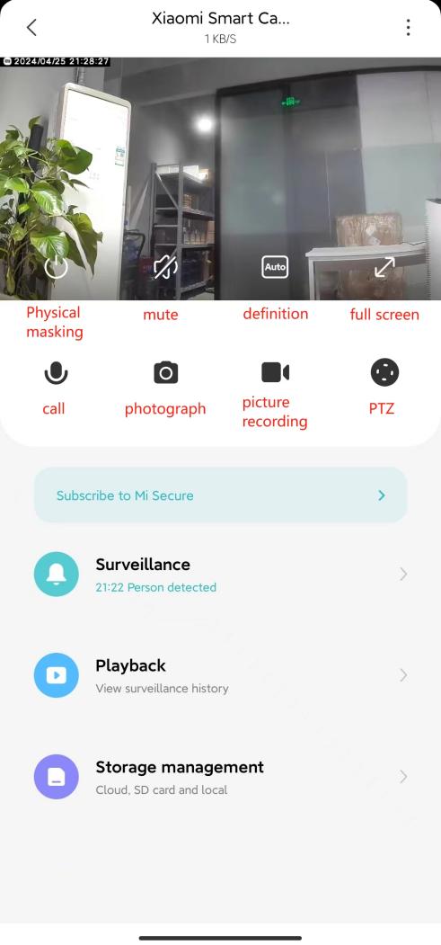 1. Aplikasi Xiaomi Home mematikan volume video real-time secara default. Anda dapat mengaktifkan tombol volume di jendela video Aplikasi Xiaomi Home dengan mengetuk ikon [Bisu]. Jika volume rendah, sesuaikan lebih tinggi di ponsel Anda.