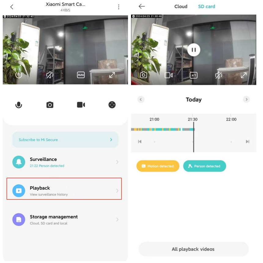 J: Penyimpanan Cloud perlu dibeli untuk digunakan. Silakan buka Aplikasi Xiaomi Home untuk masuk ke [Kamera], ketuk [Pemutaran] >> [Cloud] untuk view video sesuai permintaan.